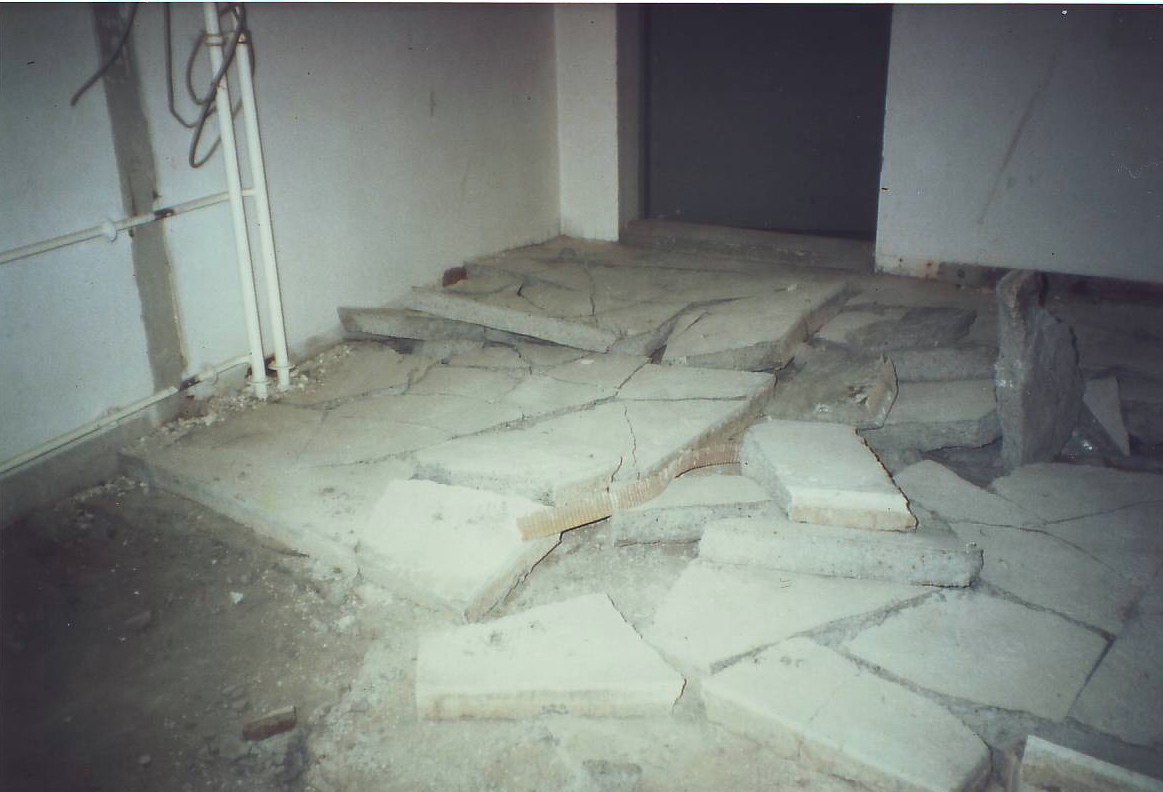 Durchführung der Altlastensanierung. Der belastete Baustoff in den Geschoßdecken wird ausgebaut.