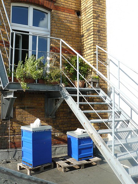 Und schließlich halten zwei der WeiberWirtschafts-Frauen seit 2011 als Hobbyimkerinnen Bienenvölker auf dem Dach, die den begehrten WeiberWirtschafts-Honig sammeln.